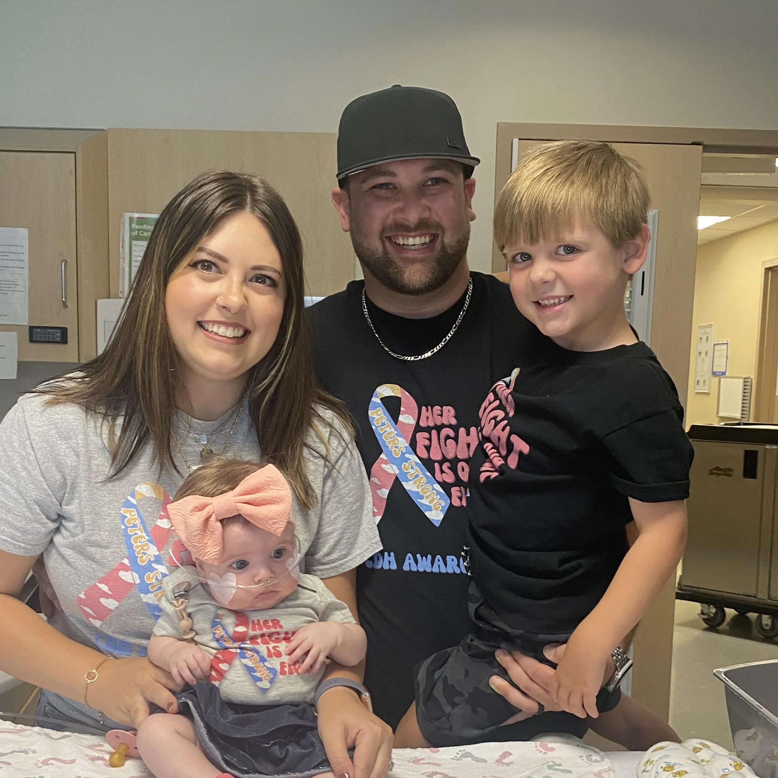 Aurora was born March 13, 2023, and came out much sicker than we expected, but we already knew she was going to be a fighter! At 6 hours old, she was put on ECMO and at one day old she had her repair surgery. Aurora remained on ECMO for 14 days. Once off ECMO Aurora was doing great! She was weaning off her vent like a champ, until we hit a slight setback when she got an infection. This caused her to go back up on support from the vent and meant she needed to start over the weaning process once we got her infection under control. She was finally extubated two days before she turned a month old. We were finally able to hold our baby girl and hear her after 30 long days! Aurora weaned down on CPAP quickly, but our next big hurdle came when we started to work on feeding. After not being able to try and eat for over a month and having reflux eating via breast or bottle was a real struggle for Aurora. We decided to opt for a Nissen G-tube surgery to help Aurora grow and thrive. After 107 days inpatient in the CDH ICU, Aurora was finally able to be discharged with a G-tube and on low-flow oxygen!