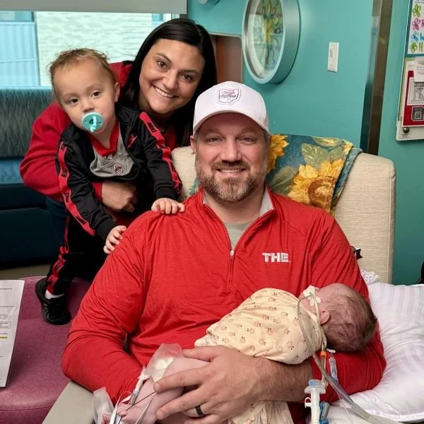 We were referred to Cincinnati Children’s Hospital, one of the best places for CDH care. At 34 weeks pregnant, I relocated to Cincinnati to be close to the hospital, while my husband and our two-year-old son traveled back and forth to be with me. It was a challenging time filled with uncertainty, but also love, strength, and hope as we prepared to meet our baby girl.